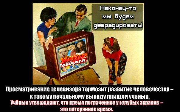 Наряду с этим внимание человека притупляется, слух вместе со зрением просто отключаются. Восприятие окружающего мира угасает (идеальные условия чтобы впарить нам рекламу). Выходит, что просмотр познавательных передач не приносит практически никакой пользы. Как воспринимать и усваивать информационные потоки, если мы попросту засыпаем?